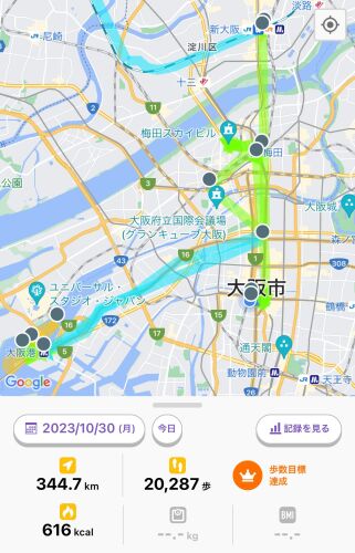 魔術師です。食い倒れの旅 2日目の昨日は難波、道頓堀、通天閣に行っています。移動系アプリのトリマのライフログから移動ログ初日 30日の大阪での移動経路よく歩きました。通勤で 5000~よく行って 8000くらいですから足が死にました。昨日 31日の移動経路道頓堀へ道頓堀と言えばグリコの看板別角度の看板、たこ焼き屋のくくるも見えます道頓堀川のクルーズ船道頓堀ドンキの前から出発ですくくるのたこ焼きクリーミーで美味しかった道頓堀通りの看板太郎さんいました太郎さんアップくくるのたこ焼きはクリーミーで美味しかった、別格ですね。やはり人気店だけに美味しいです。全般的に大阪のたこ焼きは、生地とタコだけのとろふわ系ですが美味しいですね。月の法善寺横丁苔だらけの不動明王次に大阪浮世絵美術館に寄って入館時にフラッシュを焚かなければ写真オッケーとのことで有名どころですぐ判った写楽の五代目市川團十郎です、他にも多数ありました受付で 4階に行くかと念押しして聞かれたけど結局上がらなかったのだけどもしかして春画とかがあったのかな?通天閣に移動通天閣が見えてきました通天閣の展望台に高いところから地面まで透明で見えるシースルーな床があったのですが前日に歩きすぎて足が筋肉痛になっていて踏ん張れないのもあってハッキリ言って怖かったです。充分な強度があって壊れないと判っていても足がすくみました。通天閣から降りて新世界で串カツを食べました。老舗の串カツだるま左から2本づつ、国産黒毛和牛、イベリコ豚、華味鳥奥からアスパラ、玉ねぎ、うずら、チーズ衣が細かい、カツと言うよりは感触としてアメリカンドッグの衣みたいなイメージでした。結局、食い倒れって言ってもたこ焼きばかりでごはん物を食べてないですね。ノート PC 奇蹟の復活ノ-ト PC の追加のデータドライブである D: ドライブをまったく認識しなくなっていて何も出来なくなっていたのですが更に悪いことに電源すらまともに入らなくなって単なる重りになってしまったかに思えたのですが、電源スイッチをいれても画面が真っ暗なままで立ち上がりません。Fn+電源ボタンとか何度も長押しとかして、何とか終了して、立ち上がるところで BISO セットアップに突入BIOS から内蔵バッテリーをいったん切り離して電源オフ、AC アダプタを接続して再度立ち上げ立ち上がってしまえば追加の増設 SSD も認識されてました。帰ってバラさなくてよくなりました。au じぶん銀行では旅行に行っている間に外貨自動積立が発動1通貨毎に手数料を取られるので手数料の比率を下げるため単価の高いユーロにしています。ポイントがもらえるのは 3ヶ月毎になります。前回は 7-8月の積立だったので間を空けて 10-11月で発動します。売却した月はポイントが付かないので月またぎでの売却にしないといけません。それも長期に保有するとリスクが高まるので月末購入の月初売却です。前月または当月に円への払い戻しがないことがポイント付与の条件となっています。だから値動きは関係なくこの日程でないといけないのです。ユーロを積み立てたこのタイミングで長期金利上昇でぐっと円安に振れてしまって、お見事!ナイスタイミングです。大きくプラスになります。基本もらえるポイント以内のマイナスは許容する運用方針ですがこのタイミングはありがたい。仲値が決まる 10時までに売却するようにします。まあ、プラスのタイミングがあればマイナスのタイミングもあるでしょう。今日が大阪旅行の最終日になります、早いですね~。荷物も抱えて移動しないといけないし足が死んでるので大人しく動き回らず新大阪駅の中でお土産を物色したり食事をしたりすることにしようと話合いました。人気記事の一覧のあるトップへ楽天のサービス紹介ページへ飛ぶ星影の魔術師に応援のクリックをポチッとお願いします。 皆さんの、協力に感謝しています。