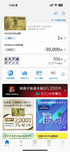 魔術師です。セゾンプラチナアメックスのプラスチックカードが到着しました。これでカード番号が判明しましたさあ、始めましょうか。見るとプラチナと言えども利用限度額がゴールドと変わらないゴールドの時に限度額が結構大きいなと思ってたけどまあ低収入なのに発行されただけ御の字でしょう。iPhone を 2台ほど宅配買取に出していたのですが査定が出ました。1.iPhone14 Pro Max 512GB 115,000 Aランク評価 箱あり、付属品完備 これは予想通り、いや予想は 10万なので予想以上の結果でした2. iPhone SE3 64GB 23,700 Cランク評価 ドコモ認定リユース品だったので箱なし、付属品なしで傷ありで条件は悪いのですが 買値の 14,800 を上回ったので充分です、即売却を了承しました。予定以上の査定が出てました。やはり結果として iPhone の資産価値は高いですね。予備機として手に入れた iPhone16 は、月々 679円の 2年レンタルで実質 1万5千円程度もし 2年後まで iPhone14 Pro Max を持っていたとしてもそれ以上に価値が下がるでしょうから2年と言わず 1年でもそれ以上に価値は下がるでしょうからこの運用はいいかも新型が出ると一括で購入し、それまで使っていたものは価値が下がらない内にできるだけ早目に売却予備機は iPhone16 のように格安でレンタルして期間中は使い続け借り換えて行く人気機種の iPhone だからこそできる運用です。別宅のスマートコンセントが死んでました。こんなのスマートプラグ WiFi Alexa Google対応 遠隔操作 タイマー機能 ハブ不要 音声操作 WIFI制御 アプリコントロール スマートコンセント アレクサ グーグルホーム PSE認証 スマート家電 スケジュール設定 Siri対応 リモコンアリエクで安いのを沢山手に入れてたけど最安で 700円台でした。遠隔で電源の入切をするために沢山必要だったのですが何年も経って端から壊れて来ています今ではもう値段が上がっていてリスクを負って個人輸入するほどの値段差はなくちゃんとした国内品を買ってます。これとかTP-Link Tapo Matter 対応 スマートプラグ プラグミニ スマートコンセント 電力モニタリング コンセント 節電·省エネ スケジュール 電源タイマー 直差し 遠隔操作 音声コントロール かんたん設週が明けました。今朝は雨や風がひどくて足元がびしょびしょになってしまってます。台風みたいでした。今週もがんばりましょう。人気記事の一覧のあるトップへ楽天のサービス紹介ページへ飛ぶ星影の魔術師に応援のクリックをポチッとお願いします。 皆さんの、協力に感謝しています。