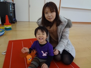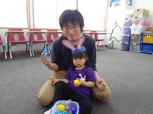 こんばんは午前中にバニークラスでもエッグハントを行いましたお外に行くのを楽しみにしてましたが、今日もあいにくの雨…外には行けなかったけど、教室の中で元気よく走っていましたよ今日は先週作ったバニーバッグを使って教室に隠してあるたまごをた~くさん集めましたたまごの中身は…animals!始めて来た時は恥ずかしくて声も出せなかったのに、今日はたまごを開けた瞬間に大きな声で言えました「Bear!!」チョコレートもゲットして、嬉しそうでした最後にママとパシャリ5月も元気に来てね待ってるよ*吉原店 Shiho*
