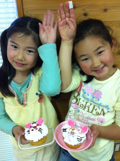 こんにちは♪Easter weekも昨日で終了!!皆かわいらしいsweetsができました☆木曜日のバニークラスはお休みが多くパパと一緒に2人でエッグハント♪バニーになりきって必死にたまごを探していました(^^)♪金曜日クラス★年長さん2年生4・5年生5年生bunny cakeを作りました♪昨日は天気がよかったので、外でegg hunting♪みなさ~ん、来週のレッスンはお休みですよ☆5月は6日からのスタートで参観会になりますので、よろしくお願いします。みんなのお土産話を楽しみにしています!!では、楽しいゴールデンウィークを★ミ*吉原店 Shiho*