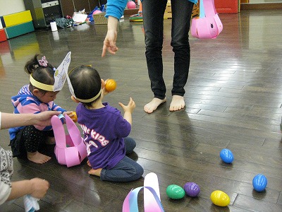 こんばんは肌寒いせいか、花粉か…鼻のむずむずがとっても気になります笑今日の年中さんクラスでもエッグハントを行いましたイースターの歌を4月は歌っているんですが、ここの年中さん、ある曲を歌う時、大爆笑しながら歌うんです理由は分からないのですが、曲がなると必ずみんなで笑い出す…不思議ですでも可愛いのでそれでも良し天気が良くなかったので、教室にてエッグハントをしました教室でも猛ダッシュいつもhungryを答える時は、とても元気今日もhungryのカードを引いた時は、すごい大きな声で「ハングリ~~~~~~~~~~~~~」と叫んでいましたたくさんゲットして、たくさん答えられましたGood job!!*吉原店 Shiho*