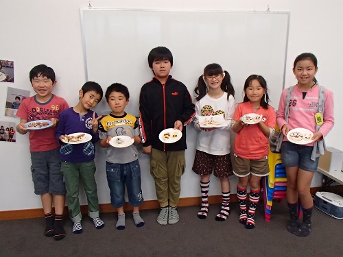 こんばんは今日は1日中先ずは、芝生広場でのエッグハンティングをと~っても楽しみにしていた2年生チームは、教室に入ってくるなり『OH!NO~!』と英語『今日、たまごちゃんできないじゃん!!』と・・・でも、教室でエッグハンティングを決行たまごの中には4月にレッスンで歌った『Easter Egg』の単語の紙がた~くさん入っていましたが、みんな8個の単語をしっかり覚えてましたテンションMAXの3人組そして、お楽しみのバニー作りとっても上手にできましたでも、なぜか3人はチョコペンが気に入ったらしく、最後までチューチューしてました続いて、6年生チーム単数、複数、WHの質問等々・・・かなりレベルの高いゲームをしたのですが、すんなりクリアすご~いって本気でびっくりした先生でしたそして、お楽しみのバニー作りはというと・・・男子チームは、「ワイルドだぜ~!」とすぎちゃんの真似をしながらワイルドにクリームをぬりまくりっていました女子チームは楽しそうにおしゃべりしながら、仲良く作りましたよそして、完成来週はGWでお休みです5月も元気いっぱい、楽しくレッスンしましょうね*吉原店 ゆきせんせい*
