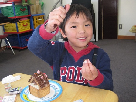 こんばんは火曜日のSayakaクラスもクリスマスイベント楽しみましたよまず年長さんお菓子の家を作りました土台はおうちでお母さんと一緒に作ってきてくれましたクラスではデコレーションをしましたいろんなSHAPEやCOLORを先生に教えてくれましたクリスマスツリーやうさぎさんのグミも飾られかわいくなりましたやまとくんとかんたくんは真剣まま達も一緒になって楽しんでくれていましたありがとうございましたじゃじゃーーーーーんカラフルに出来上がりましたおうちにもって帰って全部食べたかな次は小学1年生同じくお菓子の家のデコレーションを楽しみましたあやたくんはGARDENまで作ってくれましたこちらも真剣そのもの 妹ちゃんもチョコペンでペタペタかわいくデコレーションを手伝ってくれましたかんせーーーーいどちらのクラスも上手にできましたパチパチそしてサプライズであやたくんが先生にクリスマスカードを作ってきてくれましたしかも手創り本当にうれしかったよどうもありがとうぜったーーーい大切にするねMerry Christmas☆吉原店 Sayaka☆