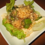 キムキムとうふサラダ(゚▽゚*)料理名:サラダ作者:Mt.fuji3776m■材料(4人分)レタス / 2枚玉ねぎ / 1/2きゅうり / 1本木綿豆腐 / 1ちょうキムチ / 30グラムポン酢 / 大さじ2ごま油 / 大さじ1こしょう / 少々かつおぶし / 大さじ2揚げ玉 / 大さじ2■レシピを考えた人のコメント混ぜるだけなので簡単過ぎです。ピリ辛好きさんにはたまりません。詳細を楽天レシピで見る