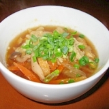 秋の春雨スープ゚+。( ゚∀゚ )。+゚゙料理名:スープ作者:Mt.fuji3776m■材料(4人分)春雨 / 30グラムしめじ / 40グラムしいたけ / 2枚エリンギ / 中1本しょうが / スライス2、3枚長ネギ / 長さ10センチしょうゆ / 大さじ1チキンコンソメ / 大さじ1こしょう / 少々塩 / 少々ラー油 / 少々白ゴマ / 少々■レシピを考えた人のコメント旬のきのこがたっぷりと入ったスープは、香りも良く栄養満点です。詳細を楽天レシピで見る
