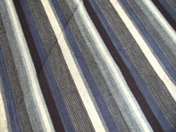 おかげ横町の木綿のお店で松坂木綿の風呂敷を買いました。藍染めの糸で織った松坂木綿は厚手でしっかりとしていて、使いやすそうです。藍染糸で織ってあることから、先日沖縄土産でいただいたミンサーに少し似ています。幅は約100センチ角位で大きく、テーブルクロスや日本酒等を包むのにも使えそうです。他にも素敵な和紙があったのですが、持ち帰れないので諦めました。残念。