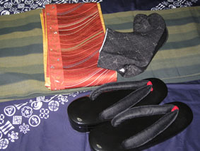 そこで、小物くらいは自分で揃えてみようと思い、某百貨店にて柄足袋と草履を購入。前日見た馬喰町の呉服屋さんとはお値段も品揃えも大分違います。どんな高いものを売り付けられるのかドキドキしながらも、店員さんにアドバイスしてもらいながら、柄足袋と黒い草履を購入。