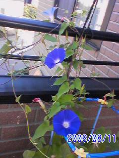 今日のアサガオ青が11個だそうです。 私が帰省してからたくさん咲くようになったみたい。 こちらは快晴です。