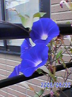 快晴。台風はいずこへ?アサガオ青ふたつ。~ここから追記(パソコンより)~今日は9日なんですけど、やっぱり朝早くに携帯から投稿すると昨日の日付。これで3回目だー夜中の12時で切り替えてもらえないものかしらねー。今週末はお客さんが来ることになったよ。オークションも終了するし、月曜からの帰省準備もある。忙しいぞー。こなせるのか、私!?