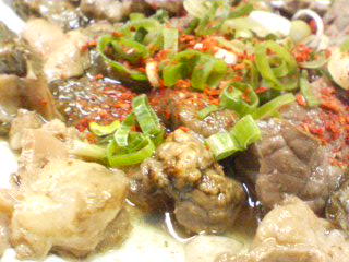 お誕生日のお祝いということで、妹家族に"大阪ディープツアー"に連れていってもらいました。うちの旦那のリクエストです。というのも、かわいがってる姪っ子が「ホルモンうどんめっちゃおいしいで~」とか「汁もめっちゃおいしいねん」とか、いつも私たちに言ってくるのです。どうも姪っ子はパパと二人、妹に隠れてディープな場所へいそいそとでかけてるみたい。はっきり言って、じゃりんこちえみたいです妹やうちの両親は、もっと上品に育ってほしいみたいですが・・・コテコテのなにわっ子も、それはそれでかわいかったりしますということで、"大阪ディープツアー"。まず、じゃんじゃん横丁の沖縄料理屋さんへ。ホルモン皿です。大鍋で煮たホルモンは案外味が濃くなかったです。おねぎと唐辛子をかけていただきます。ビールには合います。油がすごいので、そんなにたくさんは食べれないかな?これがあの”ホルモン”かぁ~ということで、妙に感動しました。お店の名前はわからなかったけど、調べてみたら・・・『丸徳』ってとこみたいです。(まちがってたらごめんなさい)本当はホルモンうどんを食べたかったのですが、その日はいろんなお店を回る予定にしていたので、いきなりおなかをふくらさないようにホルモンの煮込みのみにしました。次は・・・ホルモン道場へ・・・と思ったのですが、混み混み串カツ!とも思いましたが、どこも混み混み。最近は、いろんな新しい串カツ屋ができてるそうです。妹たちとしたら、老舗に連れて行きたいということなのですが、どこもあまりににも混んでたのであきらめました。ということで、「どこにしよ?」とぶらぶら散策。通天閣前の"釣鐘まんじゅう"のアイスがおいしい!ということで、ちょっと休憩。もなかがサクサクで、おいしかったですそれから・・・急遽、道頓堀へ移動。ここで"かどや"へ行こうとしましたが、うちの旦那が豚足が苦手ということで、"ぼんてん"へおみそで食べる餃子です。どうも神戸元町のお店みたいですね。でも道頓堀の真ん中にありましたよ。たれはこんな感じで、ラー油・お酢・お醤油にお味噌をいれるんです。これもにぴったり。二人前をぺろりといただきましたんで、ぶらぶらしながら、法善寺あたりへ移動。それから、焼き鳥の秋吉へここはチェーン店と思うんだけど・・・おいしかったです。写真は撮り忘れました結構、食べて飲んだよ。おなかいっぱいでした。妹たちありがとそれからまたぶらぶらしながら、妹宅へ・・・だんなが「デザート食べたい!」というので、もう一軒、"chilin"へあれだけおなかいっぱいになったのに、旦那はまだ食べてました。フォンダンショコラ。おいしかったらしいです。私も無理やり一口食べさせられましたが、おなかいっぱいでわかりませんでしたというわけで、楽しい"大阪ディープツアー"は終わりです。ごちゃごちゃした所で、人も多いし、疲れたけど、こういうのもたま~には楽しいです。でも気の合う人同士で、パワーみなぎってる時でないと、元気を全部吸い取られてしまうような雰囲気でした。やっぱり大阪はすごいです。おわり。