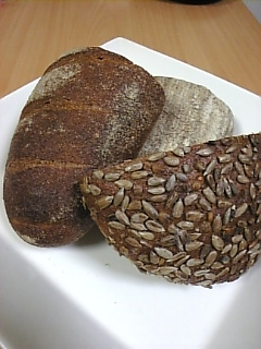 昨日のフィトテラピーのレッスンは丸一日でした。んで、ランチ(こちらは後日に載せますね)の後、以前に先生からお話だけ聞いていた、BACKEREI BIOBROT(ベッカライ・ビオブロート)というパン屋さんへ行ってきました。お店の外観といい、店内といい、とっても雰囲気のいいお店でした。これぞ、パン屋!という感じ。”魔女の宅急便”に出てくるパン屋さんみたいなのなんでもコチラはオーガニックでおいしくて有名なお店らしいです。私は本当はついていっただけだったのですが、あまりにもおいしそうだったので、買ってしまいました大きいパンばかりだったので、半分ずつにしました。こんな感じ。手前から左回りに、ゾンネンブルーメンケルンブロートヒェンフォルコンブロートヴァルヌスブロート断面はうお~ おいしそ~食べた~い!ということで、早速晩御飯にしました。もっちりとして、しっかりとして、めちゃめちゃ美味これから、レッスンの日は買ってこようと思います。ちなみに、おかずは無農薬野菜たっぷりでミネストローネ。スペアリブの金柑煮込み。母が作ってくれた金柑漬けがいっぱいあったので、いれてみました。おいしく出来上がりましたあ~、ご馳走様でした
