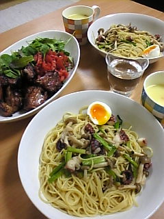 パスタはたっぷりのオリーブオイルでおねぎを炒めて。