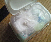娘と二人の時には、一回目の昼寝から覚めた娘が機嫌よく遊ぶのを見つつ、私がうとうとと昼寝をはじめ傍らで娘がしばし遊んでおり、二回目の離乳食やらのタイミングで、30分ほど微睡んで起きだすことがほとんどで。二回目の離乳食後だとほどなく娘も一緒になって寝てしまう…そんな感じなのですが。今日は二回目の離乳食(+私の昼食)の後、私にとてつもない眠気が襲いかかりたまらず布団を敷いて本気モードの睡眠態勢に入りました。いつも通り傍らで遊ぶ娘。一瞬で深い眠りに落ちた私に、容赦なく馬乗りになって遊ぶ娘にハッとしたりして娘の気配を感じながらもだらだらと午睡を楽しんでいました。そんな時。ふと娘の気配が消え、気になった私が頭をぐるりと回してみると飛び込んできたのは一面にばらまかれたおしりふきとその真ん中で夢中になってボックスからおしりふきを摘み出しては投げあげる娘の姿。しゃおたい地方、初雪です~キタキタキタキタ━━━(゚∀゚≡(゚∀゚≡゚∀゚)≡゚∀゚)━━━━!!これか!これなのか!噂に聞くティッシュ投げ!…ならぬ、おしりふき投げオムツはよくやってくれるけど、これは初体験!半分寝ていてぼんやりしながら、私は慌ててその大量のおしりふきをかき集めてはボックスの小さな穴に押し込みかき集めては…押し込みかき集めては…入らない_| ̄|○ほじくりだしては押し込み最後の一枚まで。詰め込まれたおしりふきの全貌1 上から詰め込まれたおしりふきの全貌2 後ろ側面から詰め込まれたおしりふきの全貌3 左側面からパチン、と蓋をしめやれやれ、と布団に転がるとパチン、と蓋の開く音。おーっっと!まだやる気ですな。おしりふきのボックスを枕にするしゃおたい。こうして一応の決着はついたものの…ガ━━(;゚Д゚)━━ン!!写真撮り忘れた!またやってくれないかなぁ…と期待するしゃおたいなのでしタ。今日の離乳食…一回目…きなこフレンチトーストとニンジンスティック ミルクに浸した食パンにきなこをまぶし、マーガリンと油をほんの少し引いたフライパンで焼きました。卵が使えたらこんな苦労しなくていいんですけどね。二回目…なすの味噌煮とコーンポタージュごはん かつおこんぶだしでナスを煮込み、味噌と砂糖を少し入れたのですが…煮汁が多くてちょっぴり甘い味噌汁風情にってしまったので片栗粉でとろみをつけました。三回目…昼間のなすの味噌煮、ごはん、ほうれん草とマグロのミルク煮、みかん 三回目のごはんを食べる前に眠ってしまったので、三回目は用意しただけで終わってしまいました。残念。