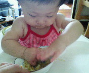 今夜は、旦那の実家で旦那の妹家族もまじえてお夕食です。日ごろお義母さんが忙しく台所をしているので、一緒にご飯が食べられるようにと手巻き寿司にしました。そして、今夜は旦那の実家に初めてのお泊りです。同じ市内に住んでいて、今まで泊まりの必要性がなかったので一度も泊まったことがありませんでしたが、「せっかくの手巻き寿司だから(ビールを)飲みたい」ということで泊まることになりました。たまのことなら…ねぇ。一日中一緒に居られたら、そりゃおばあちゃんもおじいちゃんも喜ぶし。でも…たいていの場合、旦那さんって、自分の実家でもくつろいでいるし、妻の実家でも同じようにくつろいでいませんか???だから、男性はどこでもあまり気疲れしない印象です。もちろん、そうでない場合もあれば私が旦那さんの実家で極度に気疲れするかといえば…そんなことも無いわけですが。ねぇ…。ホホホホ。(と濁しておく。)結論から言えば。とっても快適でしたヨ。くつろげるようにお義母さんが色々してくださって。たまのことですから。たまにならこういうのもいいかなぁって。思いました。オホホホ。今日の離乳食…(抜粋) 二回目…野菜と豚肉のあんかけと五目ご飯この日あたりから、ゆでて刻んだ野菜やお肉に片栗粉で作ったあんだけかけて食べさせるメニューを試しています。ただ単に水で溶いた片栗粉をレンジの時間を調節しながらあんにして、後からからめるので簡単です。