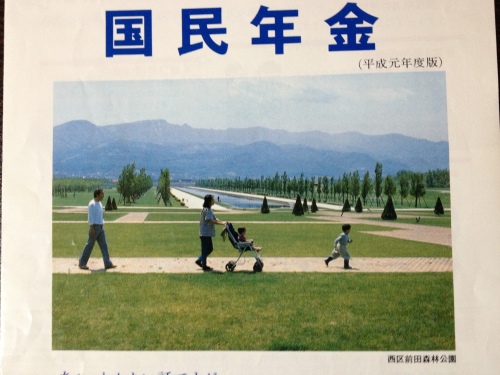 久し振りに整理をした。懐かしいパンフレットが出て来た。24年前。東京から来札間もない頃。札幌市西区前田森林公園。公園が完成し市民に公開された頃。自宅から自動車で20分、家族で行ったところ札幌市行政広報の担当から撮影依頼された。後日図書券の謝礼。季節は、5月末か6月の頃。北の最も良い季節。走る息子の長靴姿が今見ると面白い。今、それぞれの息子は27歳25歳。未だ孫の兆しはない。(笑)。国民年金資料の表紙になった。良い記念。後方に見えるのは手稲山。札幌オリンピック開催の山。
