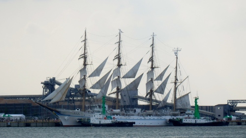 白い優雅な船体「海の貴婦人」。世界最大級の帆船「海王丸」(2556トン)。22日石狩湾新港開港20周年記念イベントに初寄港。『優雅』