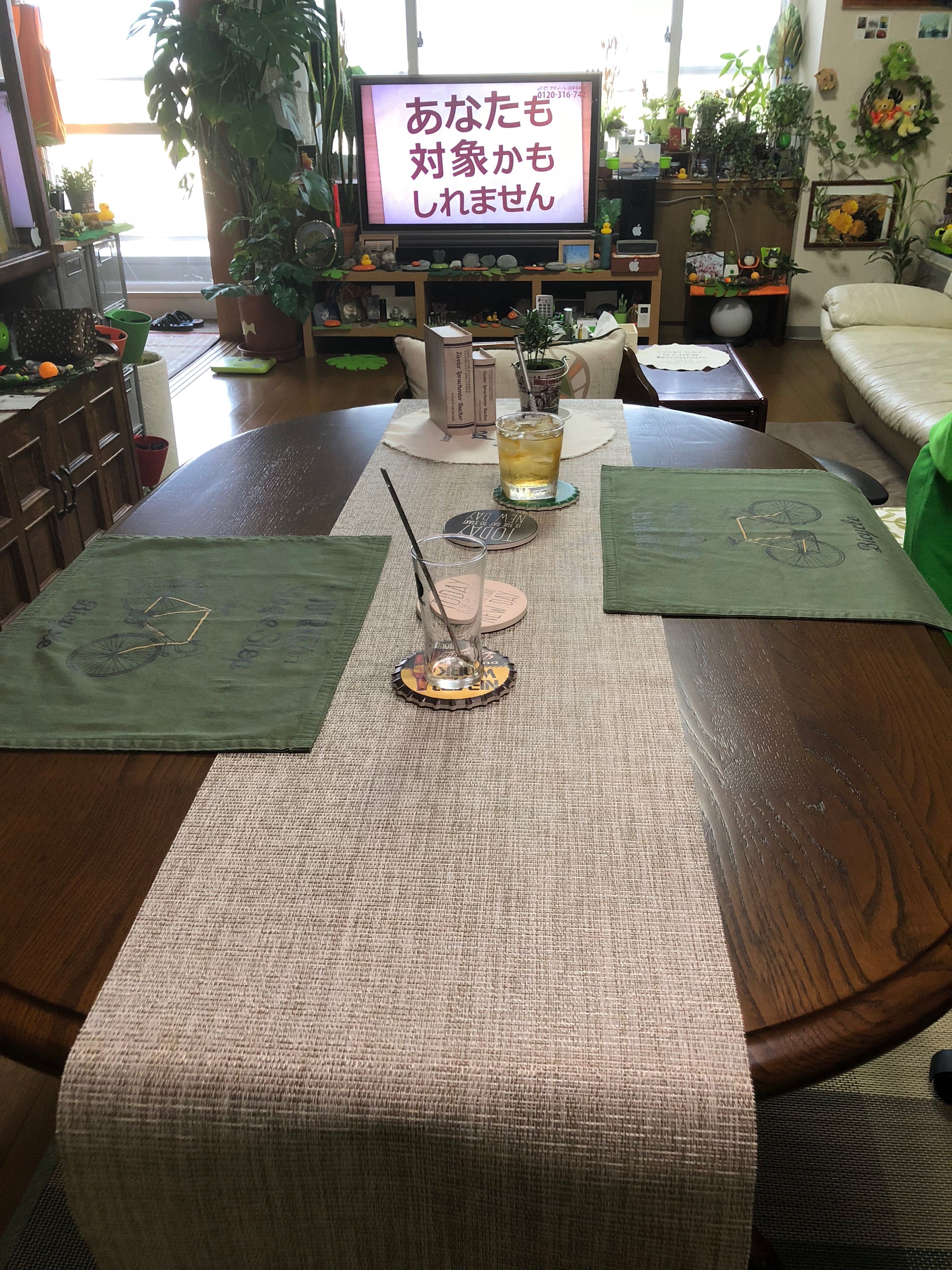 ​​ ​35年前購入の疲れたテーブル。天板修理後のテーブル。今日のテーブル。酒が美味い。​