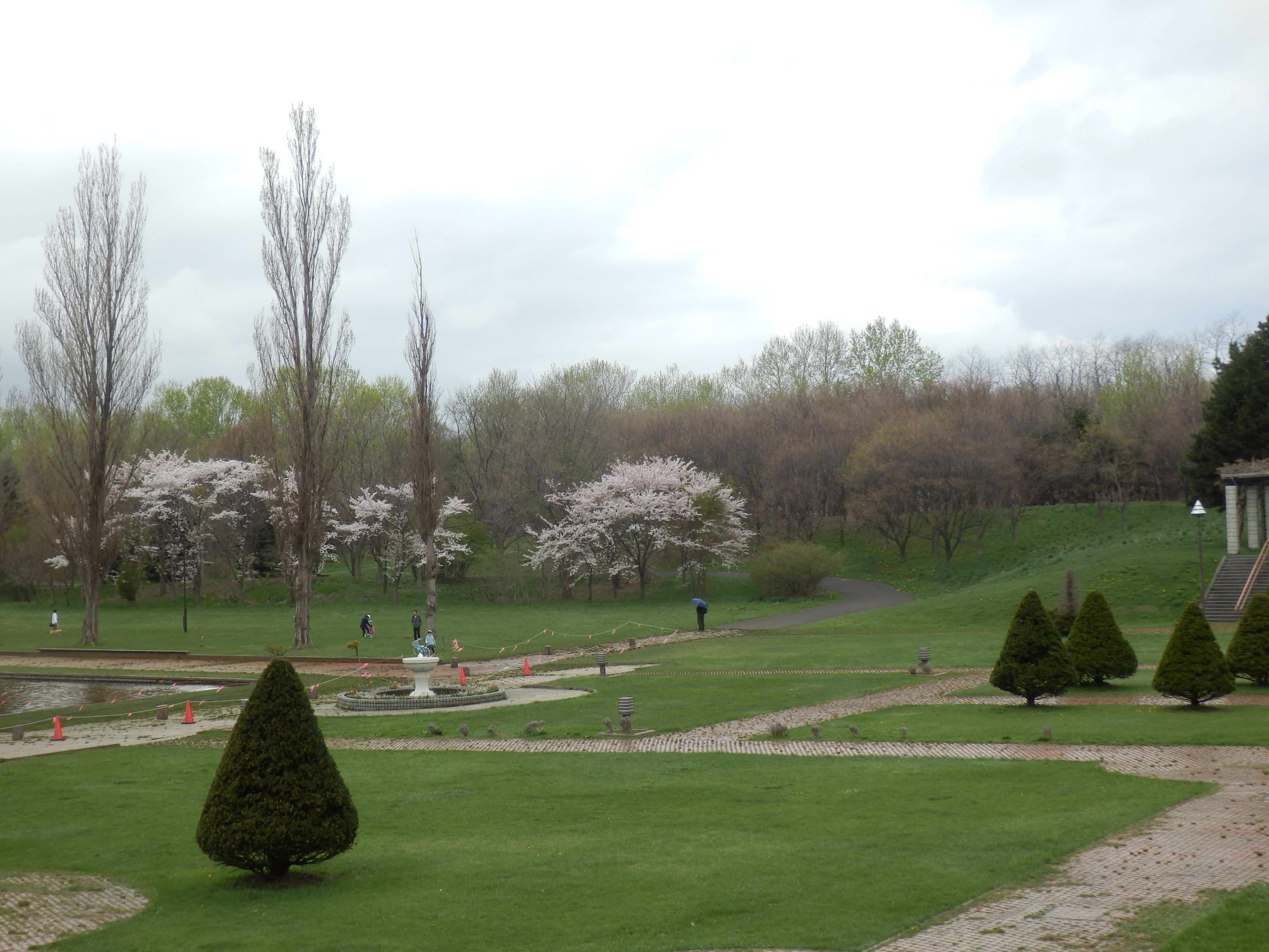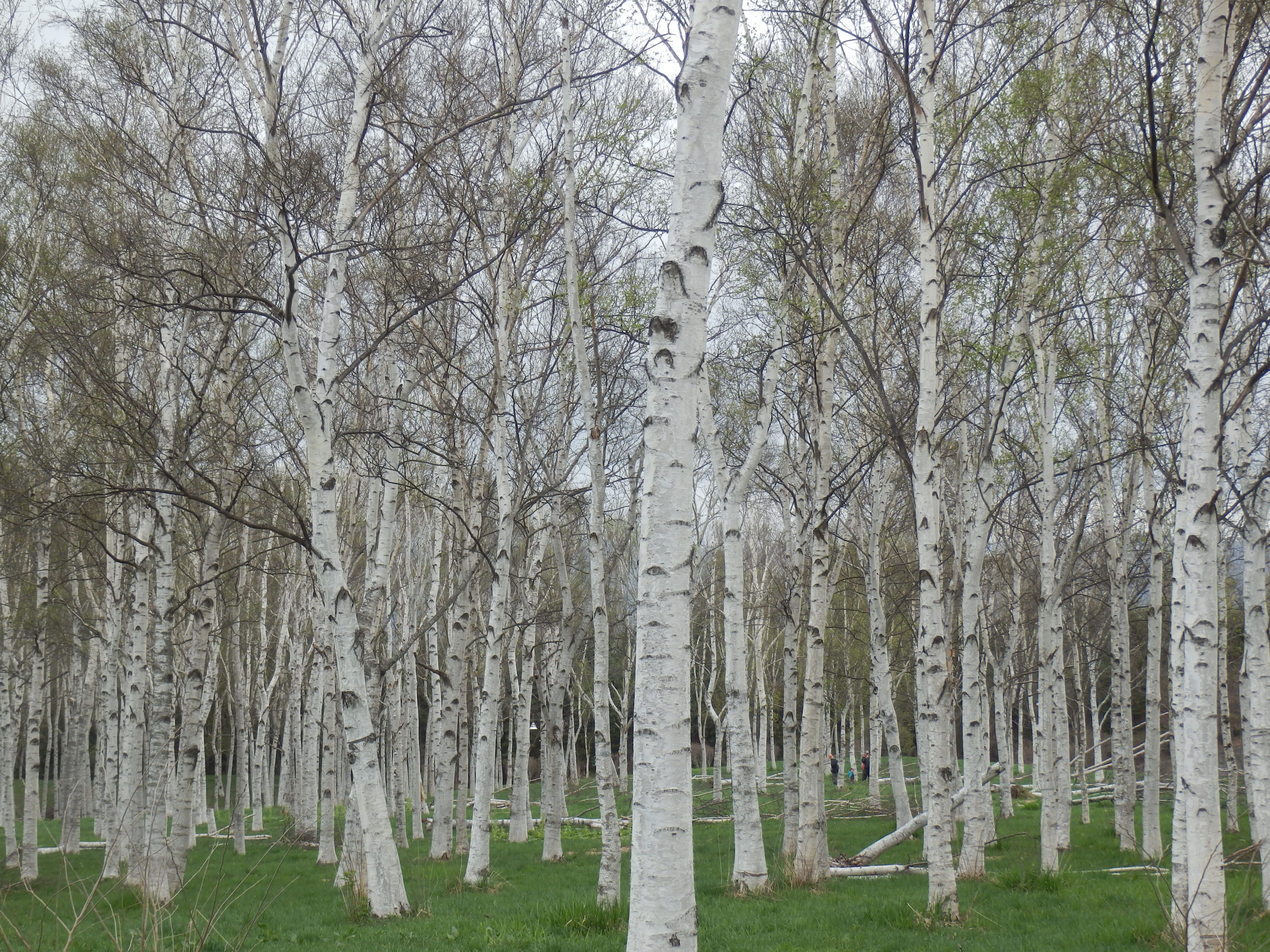 令和元年の今日。緑の葉には少し早いがポプラがこんなに育った。そして桜と白樺林。