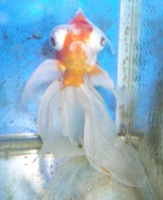 我が家の出目金。キモッなんて、ヒドイですね。白デメちゃんって名前です。(安易でしょ)ボディもヒレも何だか変ですね。金魚掬いで取りました。もう4年近く生きてるでしょうか。いろんな物が混ざった雑種ですね。ボディは和金のように薄っぺらく、とても出目金とは思えません。ヒレは大きくてキレイな蝶尾ですが、端の方がギザギザです。さすが金魚すくいの金魚って感じです。少し前まで、水泡眼とうちで孵化した黒出目金がいたのですが、2匹とも相次いで死んでしまい、家族でとてもショックでした。この子がもし死んだら、もう金魚は飼わないつもりです。熱帯魚より病気になりやすくて、難しいです。とくに琉金のように丸いボディの子は大変でした。あとやっぱり熱帯魚より大きいので、死んだ時の悲しみが大きいかも。熱帯魚水槽の他の魚です。イエローハニーグラミーです。水槽の後ろのほうにいるので、なかなか撮れません。あれ?なんか尾が変ですね?われてるじゃんうそーん?!急いで隔離して、カビがつかないように薬を塗りました。オススメ!★白点・尾ぐされ・水カビ治療薬。ニチドウ 観賞魚用 グリーンFリキッド 100mlもう1匹いて仲もよかったのですが、かなり追い回したりしてたので、その時に切れてしまったのかもしれません。尾ひれがくっつくまで様子を見ます。もう1匹は隔離してる網のそばによく来て、ツンツンしてます。ミッキーマウスプラティです。買った時は小さかったのですが、結構大きくなりました。が、写真を撮って数日後から底にいる事が多くなり、昨日死んでいました。うちの水槽ではメダカの仲間がうまく育ちません。先日のアフリカランプアイも10匹程度に減ってしまいました。プラティも何回も飼ってるのですが、レッドプラティだけがうまくいってました。子供はプラティが好きらしく、買って欲しいと頼まれますが、今後は少し控えたいと思います。やっぱり可哀想ですし。