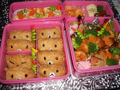 ちょっとうっかりしてたら、10月になってた。ブログの事は気になってたけど、やる時間がなかなか・・・ま、それはいつもの事なので、サラッと流して。秋といえば運動会!まぁ、もう終わったんだけどさ。毎年似たようなお弁当ばっかり作ってる気もするけど。今年はおいなりさんを「クマ」っぽくしてみました。え?耳?そんな面倒なのは省きましたよっと。幼稚園に入園して初めての運動会の時に、の弁当箱を買ったんだけど、家族分でちょうどいい感じ。なんだけど・・・量的に作りづらい・・・絶対なんか余るし。 チューリップって言うんよ。毎年から揚げをにするせいか、詰めにくいし・・・子供のリクエストなので、毎年やってるけど、ぶっちゃけ骨が邪魔くさい。蓋が閉めにくいのよね・・・食べる時には便利なんだけどさ。もう、おかずの盛り付けはひどいもんだね・・・蓋閉めるのを考えなければ、ちょっとはマシなんだけどなぁ。あーやっぱ骨だよねぇ、ホネ。来年は少し考えようかな。あ、ポテトフライ写ってないや。紙コップに詰めて持って行ってます。食べる時に便利なのよ。あとは、みかんも持って行きました。毎年作っていた「いなりのレシピ」が見当たらず、アセりました。 じゅわ~っとおいしい(^^)いなりずし by kuisinbouなので、こちらのレシピを参考に作りました。少し甘めで美味しかったです。 小学校の運動会ってのんびりしてていいですねぇ。場所取りも熾烈じゃないし、まぁ校庭が広いせいかもしれないけど。でものんびりムードのせいか、カメラを意識してる人が少なく、他人のカメラの前を平気で横切る人多数。とくにお年を召した方はかなりの確率でしゃがまない。(後ろを気にしない)カメラ席で周り中がビデオ撮影してるなか、平気で大声でしゃべる。(ふつーの世間話)ま、うちじゃないからいいけどさ。ビデオカメラなんてなかった世代だろうから、仕方ないのかもね。え?うちだったら?もちろん「ちょっと静かにしてください」って言うよ。ていうか、カメラかまえてる目の前に立たれたから、肩ポンポンして「座って」って言いましたよ。もちろんもっと丁寧に。誰でも自分の子(孫)しか見ないもんね。来年は脚立購入を検討しています。