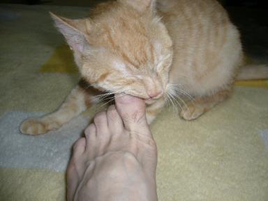ポン太は、私が風呂から出てくると、スッ飛んできて、 このように、必ず私の足にスリスリして来るのです。。。 いったい何が原因なんでしょう? 石鹸の匂いが好きなのかにゃ~? そしてしばらくスリスリが続き、舐めたり噛んだりして遊んだ後、 膝の上にひょっこり乗っかって、ゴロゴロ言いながらくつろぐにゃ~ これがまるで、日課のように・・・ ほんと、ヘンな奴!?