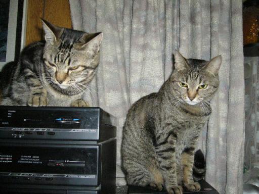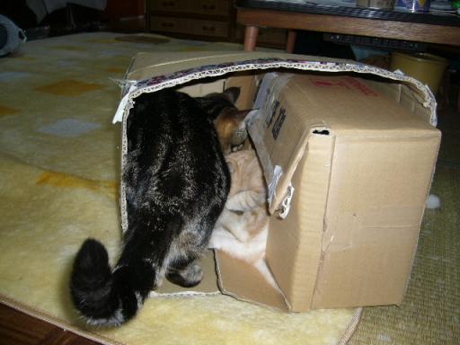 ありゃ~、お姉さん方・・・ 少し高いところから見物かい? 何か逃げる理由でもあったかにゃ~?? 実はこんな訳で、姉さんたち 避難してました。。。 殿! ちょっとそこ邪魔なんですが・・・ 退かぬと、ゴミと一緒に吸い取るじょ~! ポン太 「気にするでない、もっとちこう寄れ!」