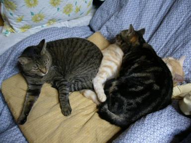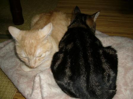 あれから数日、、、 いまだに、若干のすれ違いが続いているようで・・・ すれ違い寝? ミーコ: 「いやいや、あたいは絶対 絡まないよ!」「あたいは、孤独を愛する女だから・・・」「三角関係なんて、とんでもなぃし~~」 「絡もうったって、絡ませないわよ!」「早く あっち 行ってョ! ポン太!!」 「こうやって、独りでゴロゴロが一番なのよ~♪」少しおでぶ? そこには、人間嫌いで ニャンコ嫌いなミーコ姉が 横たわっていました。。。 完 by tomorrow's Joe