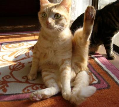 なにやら、宇宙と交信中らしい・・・ f`*bl+:/;@ニャ~.^]fe/;fg/,.:\l\o@dL**+~l*>?<`*+}^-^ ・・・ ポン太、何やってんの? あっ! いや、別に なんでもにゃ~僕はt地球に住む ふつ~のニャンコにゃ! ほら、こんにゃに笑顔が素敵でしょ~ ポン太~~~! お願いじゃ~ その笑顔は やめろ~!! エイリアンより、恐えぇ~~ うん、、、でも 誰かに似てる・・・ はい、、、と 言うわけで・・・ 皆さん お待たせしました。。 それでは、「今日のそっくりさん」のコーナーですョ~ ・・・ってそんなコーナーあったのかぁ? 寝起きのポン太 笑顔の朝青龍 はい、有難うございました。。。 ーー by tomorrow's Joe ーー