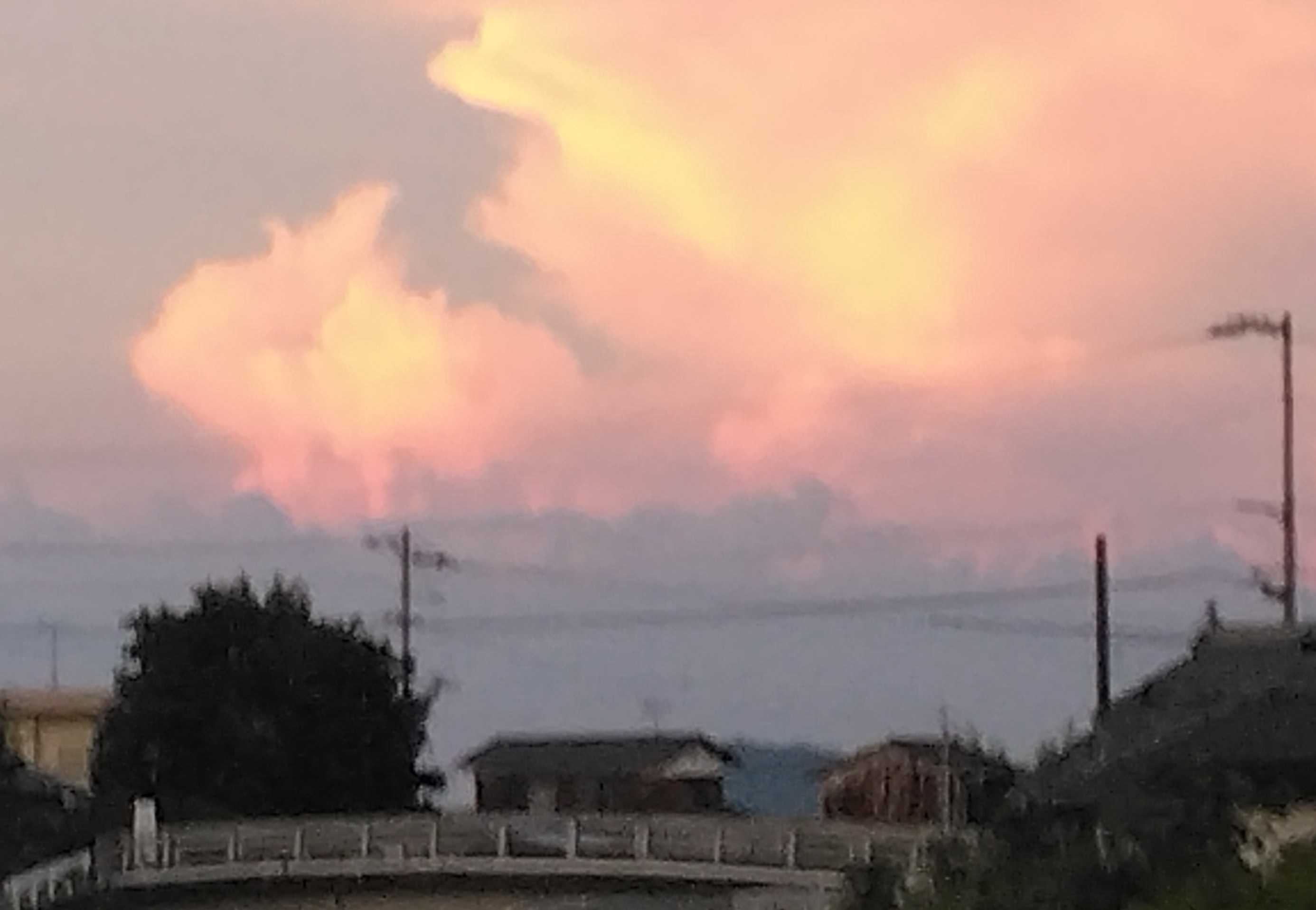 北の方の雲もピンク色に染まっていました。