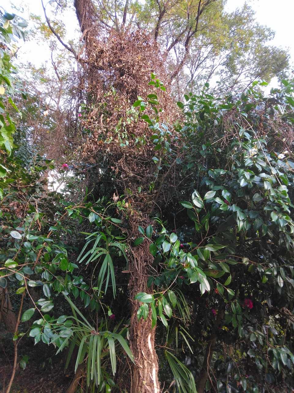 大木になる前に光合成を奪われ枯れてしまったようです。