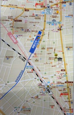 東京に出掛けたついでの、もう一つの銀輪散歩です。 トレンクル(小型折りたたみ自転車)を持って山手線で池袋駅まで行き、そこで乗り換えて、大宮経由川越で下車。 江戸の面影を残す町並みがあり、小江戸川越と呼ばれているということは予てより聞き知っていたが、それ以上の知識は何もなく、思い付きで出かけて来たに過ぎないので、先ずは駅構内の観光案内所に立ち寄り、情報収集。 観光案内所で頂戴したのが、「時薫るまち・小江戸・川越散策ガイド」(以下単に「散策ガイド」という。)というパンフレット。 これを唯一の頼りとして、JR川越駅前をトレンクルで出発。(川越駅周辺マップ・散策ガイド掲載地図) 何を見るという目的もなくやって来たので、さて何処へ行くかと考えても焦点が定まらない。 駅周辺マップで目にとまった「川越熊野神社」を目指すこととする。 クレアモールとある道を北進するのが近道のようだが、観光客が道を塞がんばかりに群れ歩いているので、自転車での走行は困難と判断。アカシア通りを北西に進み、本川越駅前に通じる広い通りに出て、これを北進することとする。 西武新宿線の本川越駅の前を通過して、川越熊野神社に到着。(川越熊野神社・八咫烏) 先ず出迎えてくれたのは八咫烏。 八咫烏と言えば、神武東征の折、生駒山越えで大和に入ろうとして長髄彦に阻まれ失敗、熊野から大和に入ることになるのだが、この時に道案内をしたのが八咫烏。この八咫烏の手引きに従い、その先頭に立ったのが大伴氏の日の臣。その功により「道の臣」という名を神武天皇から頂戴しているから、まあヤカモチとも無縁ではないということになる(笑)。(同上・拝殿)(同上・鳥居) どうやら、今回もヤカモチ流にて、裏口から境内に入ったようです。 駅前出発の際、人がぞろぞろ歩いているので自転車での進入を諦めたクレアモールという通りに面した方が表玄関であったようです。一応、表の顔の鳥居と社名標石も拝見して、トレンクルを駐輪している裏口へと引き返します。(同上・元杢網歌碑) 拝殿右手奥に狂歌師杢網の歌碑がありました。山さくら 咲けば白雲 散れば雪 花見てくらす 春ぞすくなき (落栗庵杢網)(同上・元杢網歌碑副碑)<参考>狂歌師元の杢網のこと 「元の木阿弥」をもじってのふざけた名前であるが、勿論、この狂歌師のことは存じ上げず、この碑によってその名を初めて知ったものであるが、先の「東京ついで銀輪散歩」で「恐れ入谷の鬼子母神」という地口(洒落)が太田蜀山人の作だということを知ったばかりであったから、同時代に活躍した狂歌師という繋がりで、この杢網さんに遭遇したのも「ご縁」というものであったのでしょう(笑)。蜀山人 恐れ入谷の 鬼子母神 熊野神社に 元の杢網 (偐阿弥)<参考>入谷鬼子母神&小野照崎神社 2025.5.4. 熊野神社の裏口から北に少し進むと蓮馨寺という寺があった。(蔵造りの町並み周辺マップ1・散策ガイド掲載地図)(同上2・散策ガイド掲載地図)(蓮馨寺) 蓮馨寺には、ヤカモチ流を返上し、正面玄関から入ります。(同上・呑龍堂 正面から)(同上・呑龍堂 少し角度を変えて)(同上・説明碑) 上掲の説明碑に記載の通り、蓮馨寺は、天文18年(1549年)に川越城主大導寺政繁が母の蓮馨尼を追福するため、感誉上人を招いて開山した浄土宗の寺である。<参考>蓮馨寺・Wikipedia 蓮馨寺/Home (同上・呑龍堂右隣のお堂) 「孤峯山」という蓮馨寺の山号を記した扁額か掲げられているが、何というお堂なのかは分からない。このお堂を背に鐘楼の方を向いて坐っていると、左手にお団子屋さん(名代焼だんご・松山商店)が目に入った。 この流れからは「焼き団子を買い求めて食べました」となるのが普通なんだろうが、さにあらず、ヤカモチはただ、眺めていただけなのでありました。(林崎甚助重信終焉之地碑)<参考>林崎甚助・Wikipedia 林崎甚助は、戦国時代から江戸時代前期にかけての剣客、武芸者。 居合(抜刀術)の始祖とされる。 旅先の地、川越で終焉を迎え、この蓮馨寺で葬儀が執り行われたとのことである。 林崎甚助の碑の右隣にあるのが、将監地蔵尊。(将監地蔵尊)(同上・説明碑)(蔵造りの町並み) 中央通りの仲町交差点から札の辻交差点までの450mほどが「蔵造りの町並み」の続く、川越一番街商店街で、人気のエリアということもあって、道を行く人の姿も多くなる。 人の顔が写り込んでいる写真はこれを消し込む作業を経ないとブログなどに掲載するのは不適切であろうから、このように点々とコチラ向きに歩いて来る多くの人物が写っている写真は厄介である。(同上2)(同上3)(同上4)(同上・説明文、散策ガイドより) 江戸黒と呼ばれる黒漆喰仕上げの壁が特徴の蔵造りの店舗が立ち並ぶ一角に、異彩を放っているのが、白煉瓦の西洋建築、りそなコエドテラス。(旧第八十五銀行本店・りそなコエドテラス)<参考>りそなコエドテラス・Wikipedia 現建物は、第八十五銀行本店として1918年に再建されたもの。 1996年12月に埼玉県初の国の重要有形