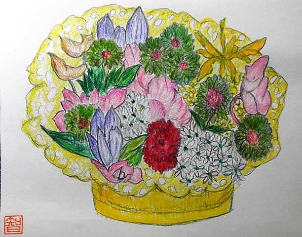この花束は、智麻呂さんが通って居られるデイサービスの施設にてお誕生日会があり、お誕生日プレゼントとして智麻呂さんが貰って帰って来られたものだそうな。
