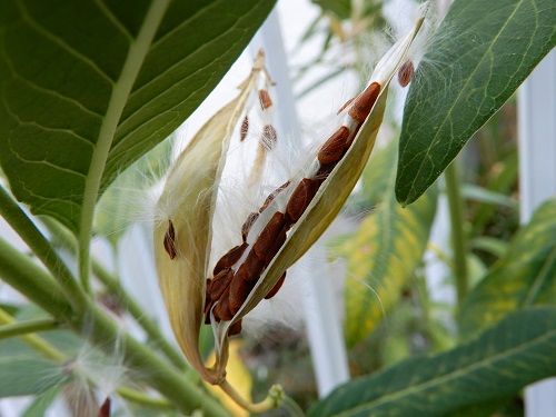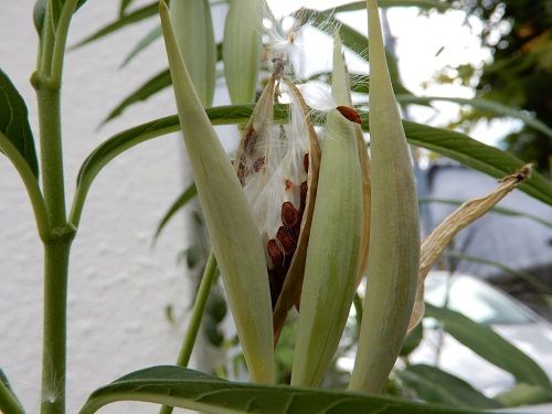 こちらはまだ種子のほとんどが鞘の中におさまっている。