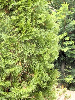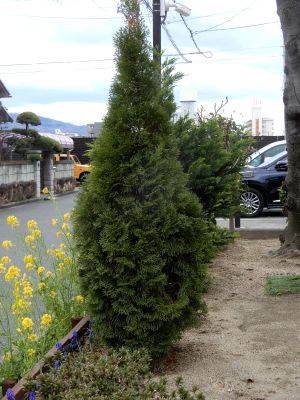 の前のポケットパークに植えられていたのは、コノテガシワの木。