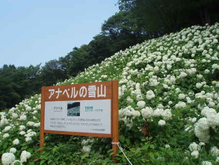 テレビで見て、ネットで見て、綺麗だなぁ~今日、近くまで行ったので寄り道山の斜面の一面ににアナベルだけを植えて雪山の感じが良く出ていました。ただ開催が明日まで(7月6日)開花の盛りが過ぎていましたが充分楽しめました。