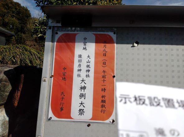 ポスターを貼り待つばかり春祭 3月9日に行われる地元の神社の例大祭の案内のポスターを、みんなで手分けして貼ってきました。 町内には31ヶ所の掲示板がありますが、どこも道が狭く道路脇に車を止めても、後続車が来ると会釈をしてちょっと待ってもらうこともありました。 これで後は8日の前日準備と9日の祭典を待つばかりになりました。