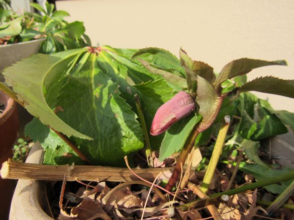 クリスマスローズ咲き出し二月果つ 今日で2月も終わりです。 室内や温室に入りきれない植木は、不織布を掛けて外に出しっぱなしにしてありますが、そのクリスマスローズが咲き出しました。 今日も暖かい日で咲き出したようです。 来週からはやっと雨か雪の予報で、乾ききった地を湿らせてくれそうです。 野菜とかが育たず苦労していますが、大船渡の山火事に比べたらまだ良い方です。 早く鎮火するよう祈っています。