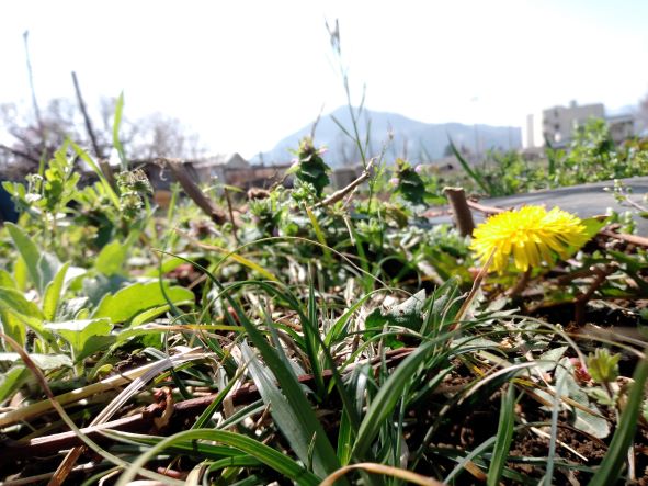 山畑の道に蒲公英そこここに 山の高台にある畑に行き、里芋を植える畑作りをしました。 3月30日に「菫」を投稿しましたが、その時には見えなかった蒲公英があちこちに咲いていました。 春はどんどん進んでいる事を感じますが、これからもっと咲き、やがて蒲公英の絮が飛び始める頃には畑の中にまで飛んでしまいます。 今は美しく見ていますが、人間の勝手で、絮になる前に鬼の形相で駆除することになりそうです。