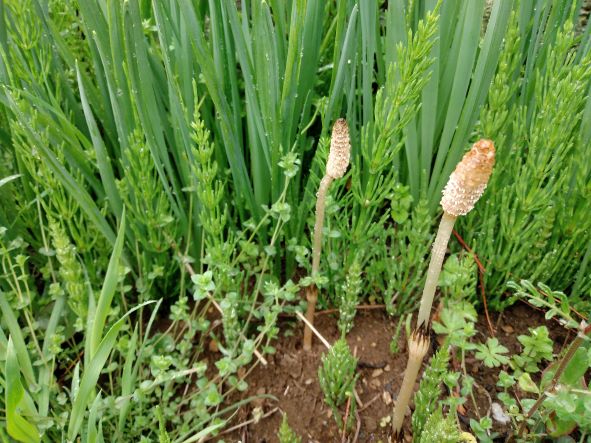 雨浸みる地からすっくと土筆生う 昨日は快晴の一日でしたが、今日は一転して朝から雨になりました。 最後は野手がピッチャーをやるという大味なMLBの試合を見ていましたが、最後まで見ずにスイッチを切り、気分転換にちょうど小降りになった庭を歩いていると、雑草の中に土筆がずいぶん育っているのが見えました。 お湿りに元気に育って入るようですが、周りには本体のスギナがたくさん伸びています。 いずれは根から処分しなければなりませんが、今日は一日雨のようなのでこのまま見ているだけにしましょうか。