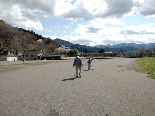 久々の晴れ清明の日は楽し 今日から清明です。 検索すると 清明とは、「清浄明潔」ということばを略したもので、全てのものが清らかで生き生きしているという意味。ことば通り、さまざまな花が咲き、木々は生命力にあふれ、生き物は元気よく動き回る時期です。とありました。 今日はグランドゴルフの練習日でした。 4月2日が雨で中止になり、今日も降り続いた雨の影響で午前中にグランドの状態を見に行くほどでした。 朝から晴れてくれたので多少柔らかい土でしたが、太陽がプレー出来るまで乾かしてくれたので、練習を予定通り行うという連絡網を回しました。 時間になって集まってきた仲間も、よくこれだけ乾いたねと驚いていました。 久々の青空の下、気持ち良くプレーが出来て良かったと思っています。