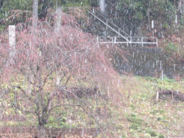 一時は雨から雪の四月来る 今日から4月ですが、朝から冷たい雨が降っています。 天気予報では10センチの雪が降ると言っていましたが、これはエイプリルフールで済みそうだと思っていると雪が舞い始め、やはりなとちょっと緊張しました。 幸いな事に少しの時間で雨になり今も降り続いています。 2月は一滴の雨も降らず乾燥状態が続いていましたが、3月になってかなりの雪が3回も降り、4月に入っても気温が低く、冷たい雨のスタートになりました。 4月4日は清明ですが、天気の安定した4月になってほしいものです。