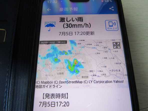 写真俳句に投稿しようとしているとスマホがなり、豪雨予報が送られてきました。