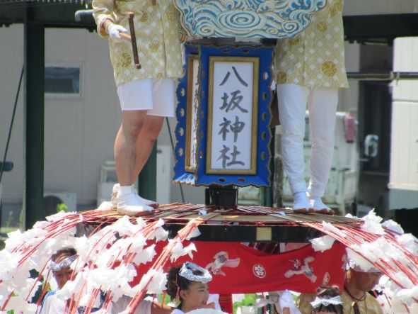 天辺には「八坂神社」と書かれていますが、秩父夜祭の屋台の収蔵庫のある愛宕神社に、八坂神社が合祀されていて、祇園まつりと言われて厄災を流す夏祭りです。