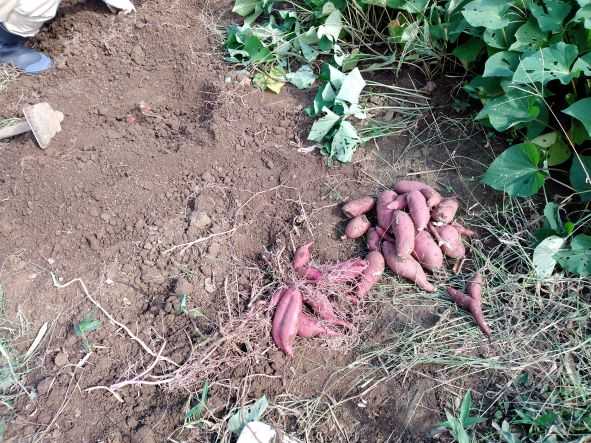 息子も久しぶりの休みだったので、サツマイモの試し掘りをしました。