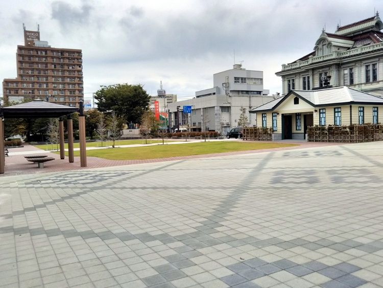 弘前がどんどん変わっていきますね。今日もそのひとつ。青森銀行記念館向かいにある「弘前市民広場」です。公園内から青森銀行記念館をぱちり。青森銀行記念館の一部みたいに写ってしまってますが・・・w「弘前市民広場」の中に出来た公衆トイレです。多目的トイレもあります。逆側から桜大通り方面をぱちり。広々~♪