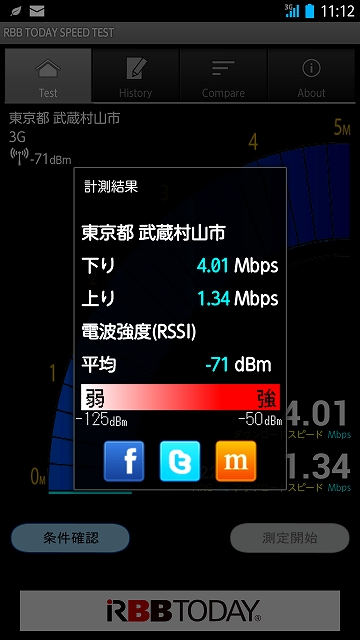 T-01Dにイー・モバイルのSIMを入れたことは先日書きましたが、改めてスピードテストをやってみました。あっ私の住処がわかるか(^^ゞ私の自宅のある武蔵村山ではこのくらいでした。職場のある新宿で、明け方に試したら1M行かないこともままありました…都内はやっぱり混んでいるのかな~ま、1M近く出てくれれば十分実用範囲だと考えています…出先でGBレベルのダウンロードはしないでしょうしね…する人はするのかな(^^ゞ