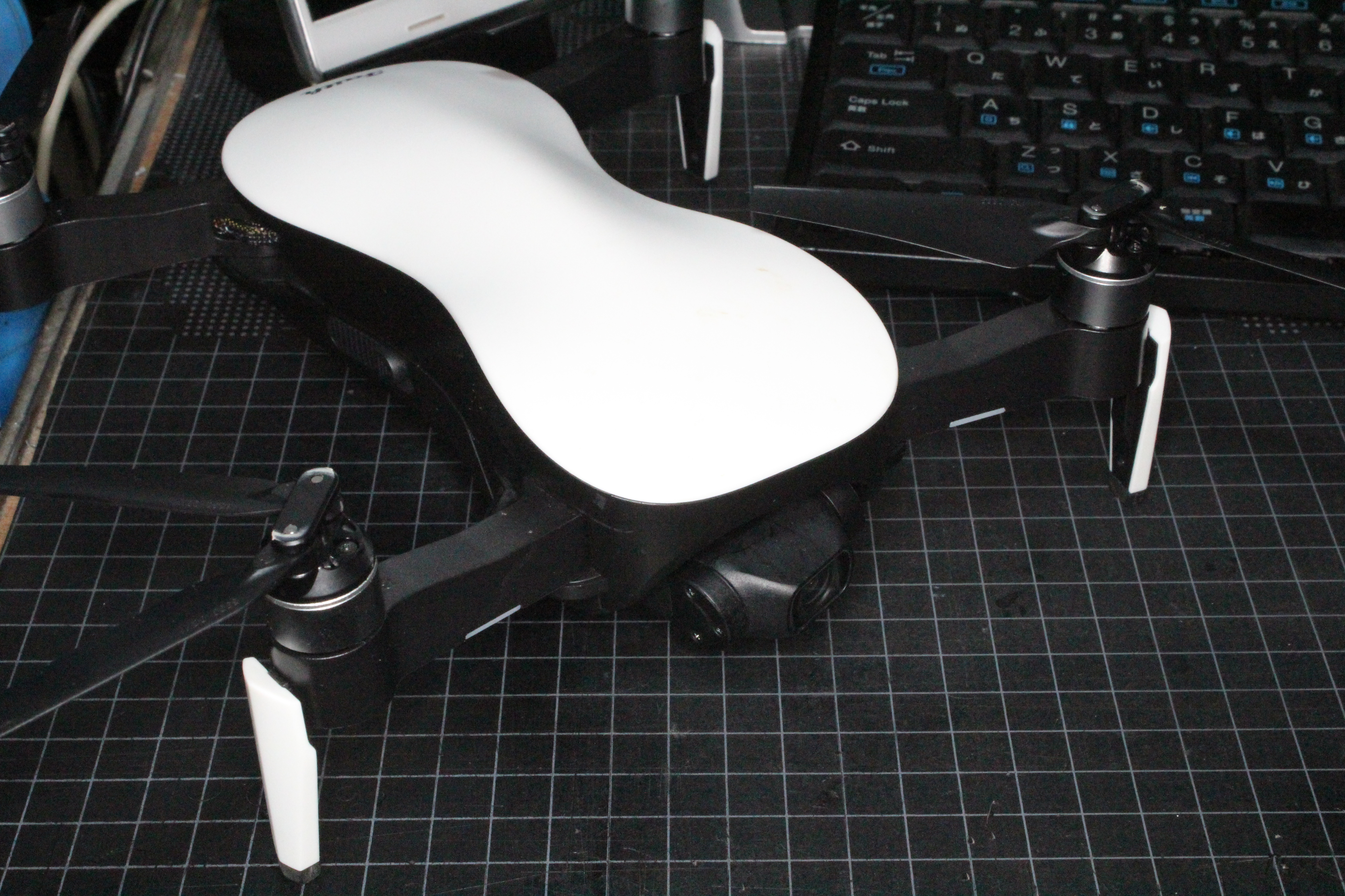 一番新しい機体…Faithなんですけどね…はっきり書きづらいところは察してください(^^ゞ今年も元旦はお休みになったので日の出を撮ろうか寸前まで迷ったのですが、代り映えのないものになるよな~ということでやめてしまいました…大晦日にPCの組み換えなどもやったので疲れたというのもありますけどね…で、新しい機体の話ですが室内ではあまり安定してくれない…光学と超音波で安定という触れ込みなんですけどね~加えてスマホへのFPVの遅延が甚だしいと言うのもあり、なかなか実験飛行も気が乗らないのですがプロペラを交換したので、安定性の確認でほんの少し飛ばしてみましたそんなわけで動画は撮りましたが割愛しますそうそう、組み換えに絡むといえば絡むPCの話ですが、BEBOP2の全部とH501Sの大半の録画データが消えました(泣)コピー失敗を繰り返した挙句に中が見えない状態になったりしたのですが、つい先日マイビデオに貯めていた空撮系の動画を移動したばかりでまだどこにもバックアップしていなかったんですよ~今となってはどれほどの量だかもわかりませんが、Youtubeに上がっているファイルだけになってしまいました閑話休題…とっ散らかっている部屋の動画なんて面白くないでしょ?それでもブログのにぎやかしに静止画は何枚か貼ってみたりする(笑)ベッドの足元…漫画と3Dプリンターのフィラメントでいっぱいカメラを下に向けてみました上のごちゃごちゃの下に足を入れて寝てます…大きな地震が来たら、足を押さえられてしまってダメでしょうね…なにが?3DプリンターとサブPC等々自分では慣れていてあまり気になりませんが映像で見るといかにもごちゃごちゃです一番左に見切れているディスプレイがメインPCの物ですで、FPVの遅延ですが、改善しました…設定をいじったのではなくスマホを変えただけ(^^ゞ今まではXperia Z5を使っていたのですが、試しにXperia XPerformanceだとどうかな?と試したところ普通に表示してくれました。…つまりスマホの能力不足だったみたいですねまあ、5秒10秒というレベルで遅延していたので、機体側のせいで出ていたのならクレームが出てもおかしくないんだけどねあとは私の勝手な思い込みですがZ5とXPでは発熱は大きいけどZ5の方が性能が上だと信じていたのも試してみなかった理由なんですけどちゃんと遅延なしでFPVが表示されるなら、改めて実験をやってもよいかな~なんて考えてます。ただ、夜明けは遅いし寒いので朝方にグランドでというのが面倒なのが冬の嫌なところ…でもまだまともに飛ばしてもいないので、近日中に飛ばしてみようとは思ってますので期待せずにお待ちくださいませ(^^)