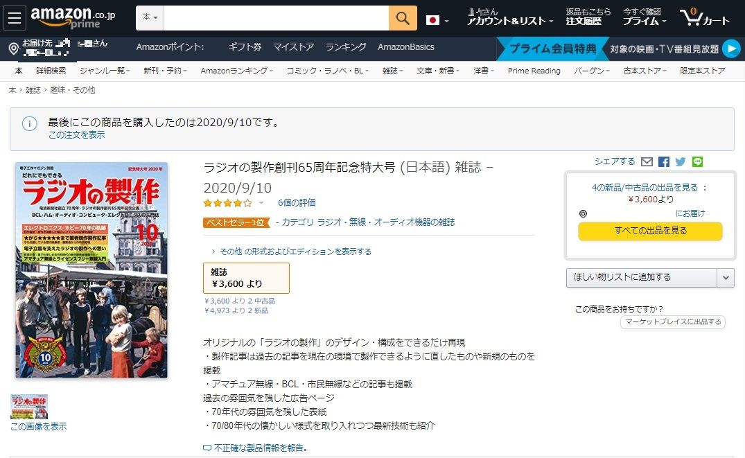 ラジオの製作とか初歩のラジオとか昔はよく立ち読みしました(^^;…時々は買っていましたけどね……ラジオの製作は少々前に休刊になっていたのですが創刊65周年記念ということで特別号が9/10に発売されましたAmazonのリンクを張っておきますが、もう値段が5割増しこれを買うことはないです…他のショップで月末入荷予定と言う文字も見たので、少々待てば買えると思うんだけど……私はアマゾンが販売するものを9/10の早朝に注文したのですが、その時点で入荷時期不明でした……最悪キャンセルでも良いし気長に待とうと思っていましたそれが今日到着したわけです……意外に早かったほんと、昔の「ラ製」そのまんまの雰囲気まごうことなき2020年10月号特集は昔からの振り返りもあり懐かしいラ製と初ラ…私が持っているイメージでは、どちらも電子工作初心者向けでしたがラ製のほうが出来上がるものがちょっと高度だったような気がします。できるだけ簡単に、でも出来上がれば実用できる物とかね例えばワイヤレスマイクレベルのQRPだけどアマチュア帯の送信機とかそれと対にできる受信機とか…私には作れませんでしたが(^^;◎ヘンテナもこちらに寄稿されていた方のものでしたよねまだ数ページパラパラと見ただけですが、読むのが楽しみですと言うことで、ラジオの製作創刊65周年記念特大号を購入できたというお話でした