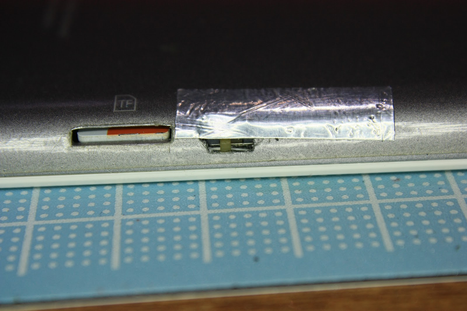 アルミテープは…ははは(^^ゞ昨日のスイッチをなんとか入れようと穴を広げすぎました
