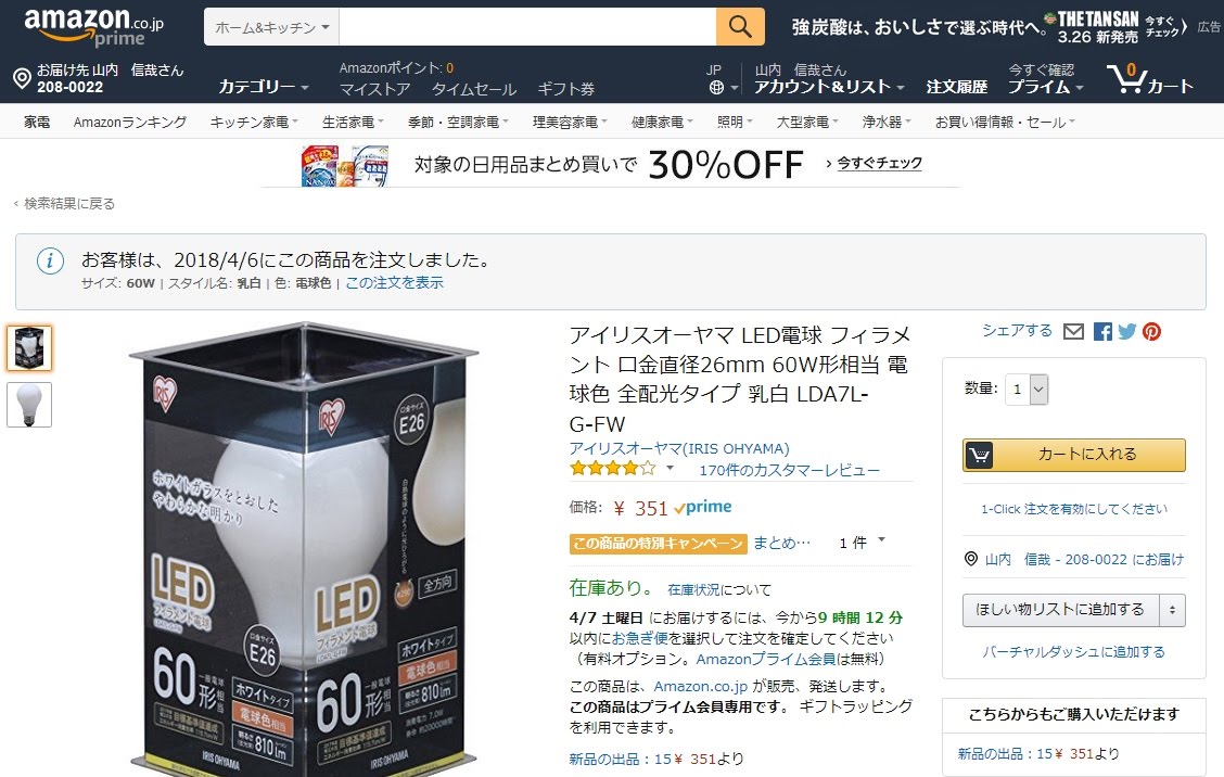 これも明日には到着するので、交換すれば、いわゆる電球は